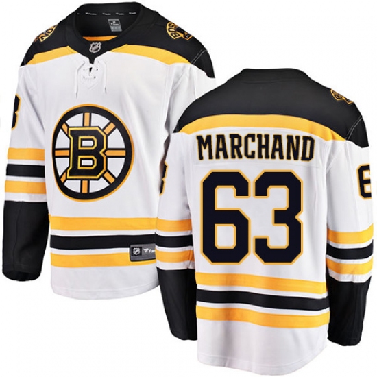 Men's Boston Bruins #63 Brad Marchand Authentic White Away Fanatics Branded Breakaway NHL Jersey