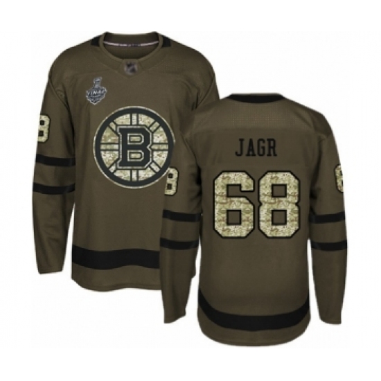 >Men's Boston Bruins #68 Jaromir Jagr Authentic Green Salute to Service 2019 Stanley Cup Final Bound Hockey Jersey