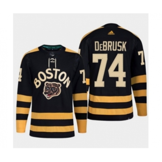 Men's Adidas Boston Bruins #74 Jake DeBrusk Authentic Black 1917-2017 100th Anniversary NHL Jersey