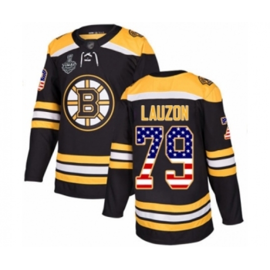 >Men's Boston Bruins #79 Jeremy Lauzon Authentic Black USA Flag Fashion 2019 Stanley Cup Final Bound Hockey Jersey