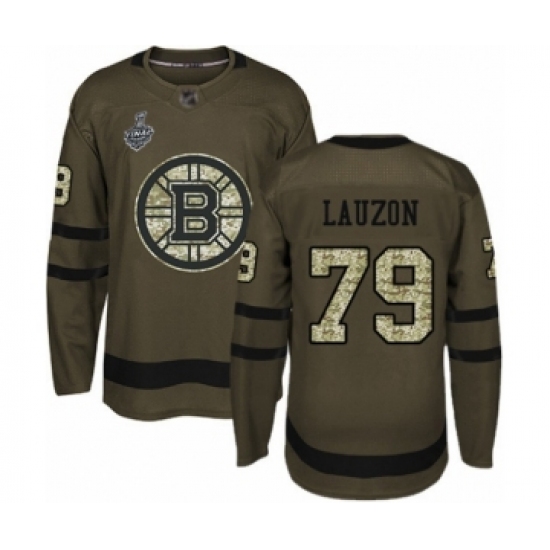 >Men's Boston Bruins #79 Jeremy Lauzon Authentic Green Salute to Service 2019 Stanley Cup Final Bound Hockey Jersey