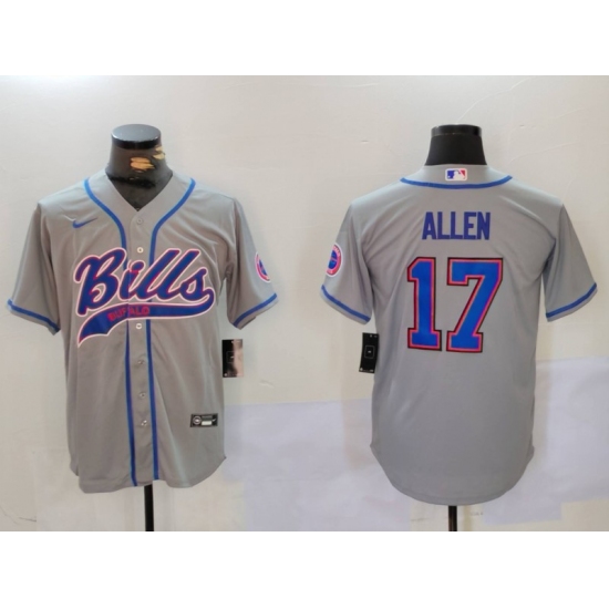 >Men's Buffalo Bills #17 Josh Allen Grey Team Cool Base Stitched Baseball Jersey1