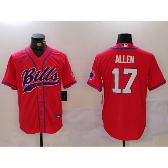 Men's Buffalo Bills #17 Josh Allen Red Cool Base Stitched Baseball Jersey
