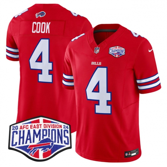 Men's Buffalo Bills #4 James Cook Red F.U.S.E. 2024 AFC East Division Champions Vapor Limited Stitched Football Jersey