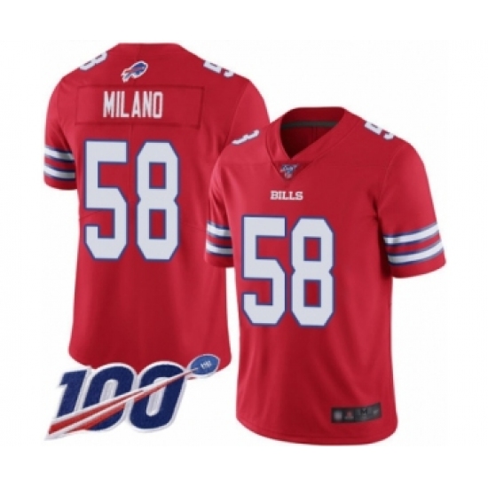 >Men's Buffalo Bills #58 Matt Milano Limited Red Rush Vapor Untouchable 100th Season Football Jersey
