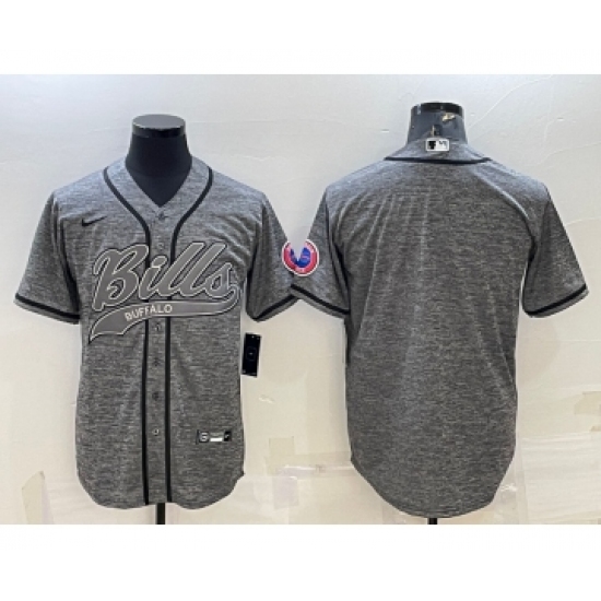>Men's Buffalo Bills Blank Grey With Patch Cool Base Stitched Baseball Jersey