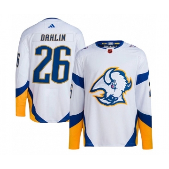 >Men's Buffalo Sabres #26 Rasmus Dahlin White 2022-23 Reverse Retro Stitched Jersey