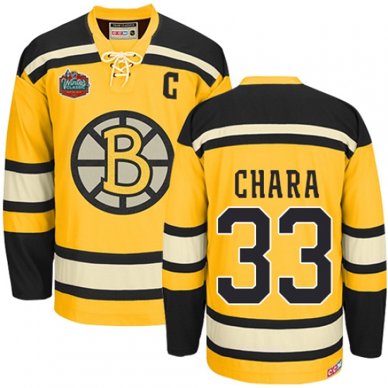 Men's CCM Boston Bruins #33 Zdeno Chara Authentic Gold Winter Classic Throwback NHL Jersey