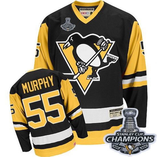 Men's CCM Pittsburgh Penguins #55 Larry Murphy Authentic Black Throwback 2017 Stanley Cup Champions NHL Jersey