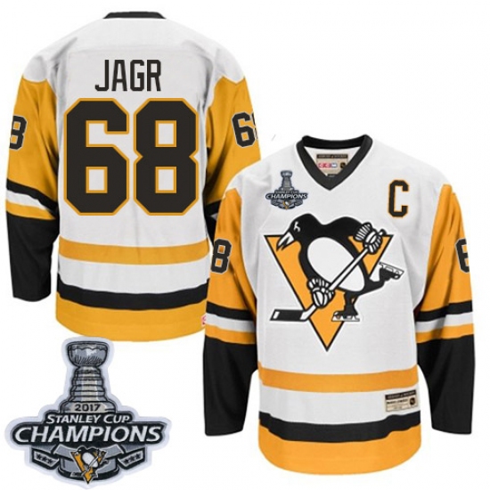 Men's CCM Pittsburgh Penguins #68 Jaromir Jagr Authentic White Throwback 2017 Stanley Cup Champions NHL Jersey