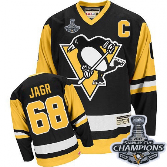 Men's CCM Pittsburgh Penguins #68 Jaromir Jagr Premier Black Throwback 2017 Stanley Cup Champions NHL Jersey