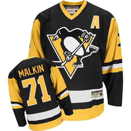 Men's CCM Pittsburgh Penguins #71 Evgeni Malkin Premier Black Throwback NHL Jersey