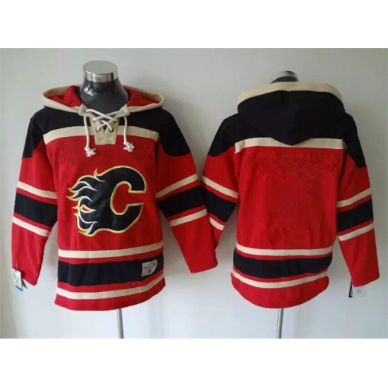 Men's Calgary Flames Blank Red Black Ageless Must-Have Lace-Up Pullover Hoodie
