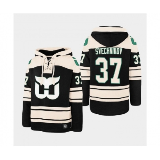 >Men's Carolina Hurricanes #37 Andrei Svechnikov Black Ageless Must-Have Lace-Up Pullover Hoodie
