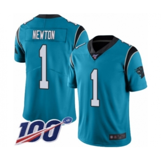 Men's Carolina Panthers #1 Cam Newton Blue Alternate Vapor Untouchable Limited Player 100th Season Football Jersey