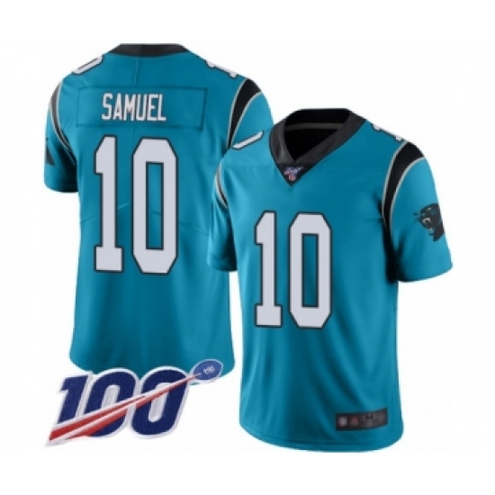>Men's Carolina Panthers #10 Curtis Samuel Blue Alternate Vapor Untouchable Limited Player 100th Season Football Jersey