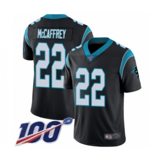 Men's Carolina Panthers #22 Christian McCaffrey Black Team Color Vapor Untouchable Limited Player 100th Season Football Jersey