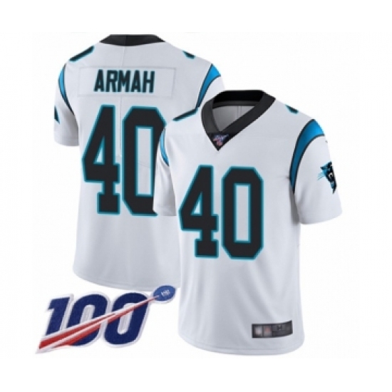 Men's Carolina Panthers #40 Alex Armah White Vapor Untouchable Limited Player 100th Season Football Jersey