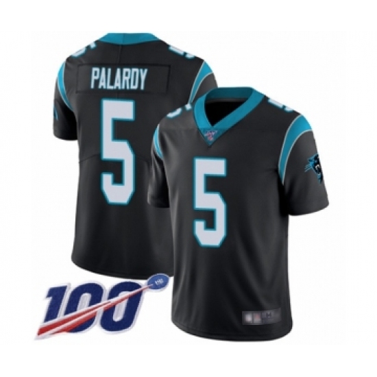 >Men's Carolina Panthers #5 Michael Palardy Black Team Color Vapor Untouchable Limited Player 100th Season Football Jersey