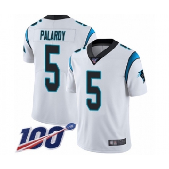 >Men's Carolina Panthers #5 Michael Palardy White Vapor Untouchable Limited Player 100th Season Football Jersey