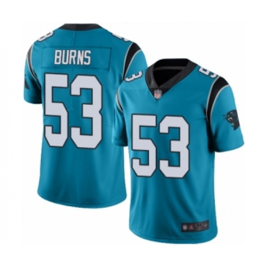 >Men's Carolina Panthers #53 Brian Burns Limited Blue Rush Vapor Untouchable Football Jersey