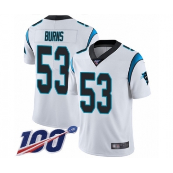 Men's Carolina Panthers #53 Brian Burns White Vapor Untouchable Limited Player 100th Season Football Jersey