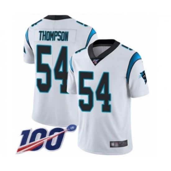 >Men's Carolina Panthers #54 Shaq Thompson White Vapor Untouchable Limited Player 100th Season Football Jersey
