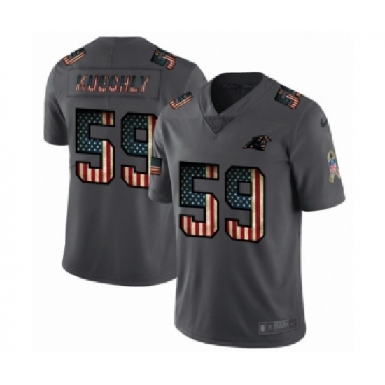 >Men's Carolina Panthers #59 Luke Kuechly Limited Black USA Flag 2019 Salute To Service Football Jersey