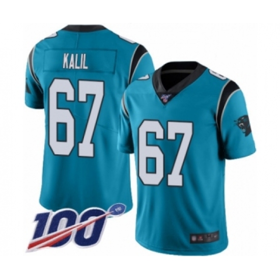 Men's Carolina Panthers #67 Ryan Kalil Limited Blue Rush Vapor Untouchable 100th Season Football Jersey