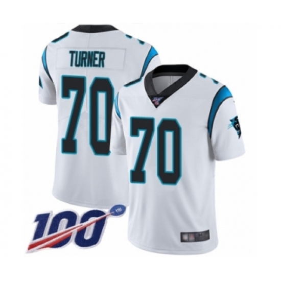 Men's Carolina Panthers #70 Trai Turner White Vapor Untouchable Limited Player 100th Season Football Jersey