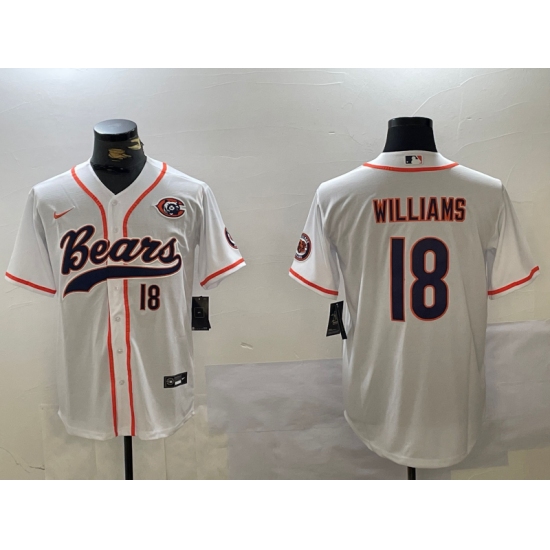 >Men's Chicago Bears #18 Caleb Williams Number White Throwback With Cool Base Stitched Baseball Jersey
