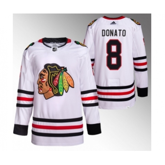 Men's Chicago Blackhawks #8 Ryan Donato White Stitched Hockey Jersey