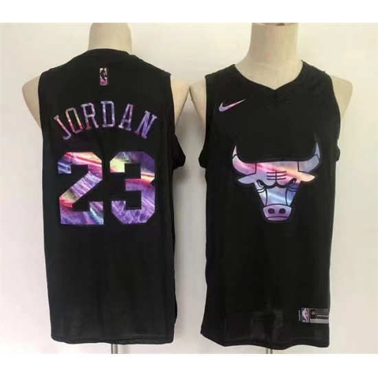 Men's Chicago Bulls #23 Michael Jordan Black Iridescent Holographic 2021 Jersey