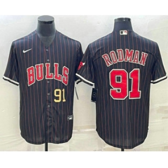 Men's Chicago Bulls #91 Dennis Rodman Black With Patch Cool Base Stitched Baseball Jersey