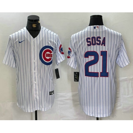 Men's Chicago Cubs #21 Sammy Sosa White With Cool Base Stitched Baseball Jersey