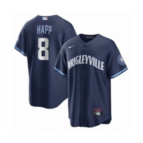Men's Nike Chicago Cubs #8 Ian Happ Navy City Connect Cool Base Stitched Baseball Jersey