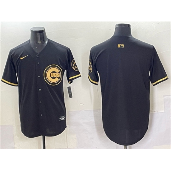 Men's Chicago Cubs Blank Black Gold Limited Stitched Baseball Jersey