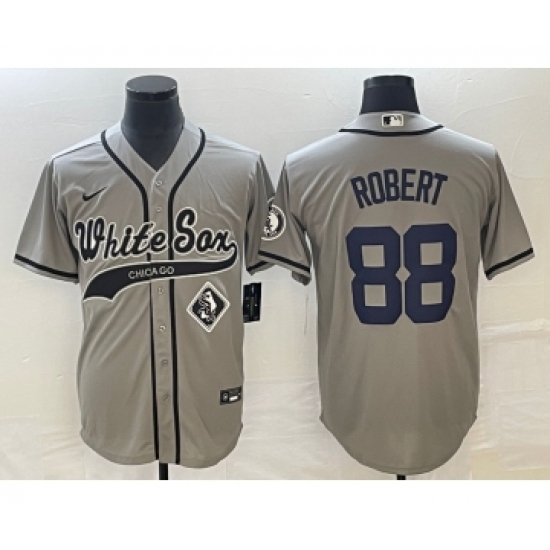 >Men's Chicago White Sox #88 Luis Robert Grey Cool Base Stitched Baseball Jersey1