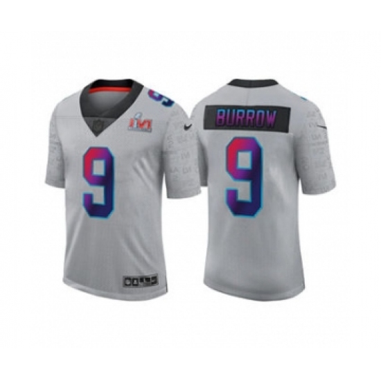 >Men's Cincinnati Bengals #9 Joe Burrow 2022 Gray Super Bowl LVI Limited Stitched Jersey