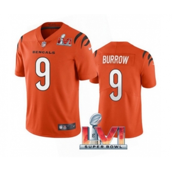 Men's Cincinnati Bengals #9 Joe Burrow 2022 Orange Super Bowl LVI Vapor Limited Stitched Jersey