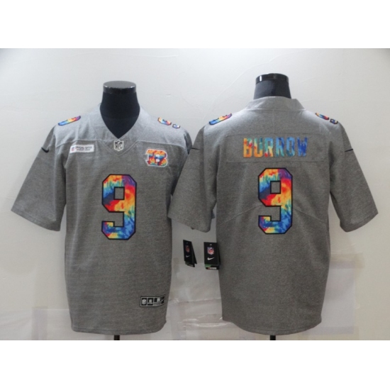 Men's Cincinnati Bengals #9 Joe Burrow Gray Rainbow Version Nike Limited Jersey