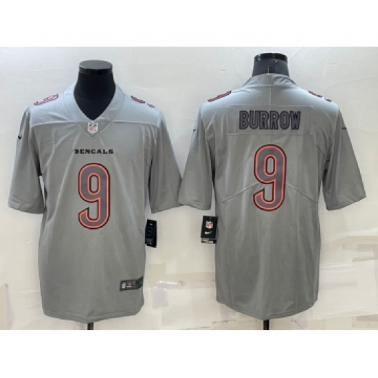 >Men's Cincinnati Bengals #9 Joe Burrow Grey Atmosphere Fashion 2022 Vapor Untouchable Stitched Limited Jersey