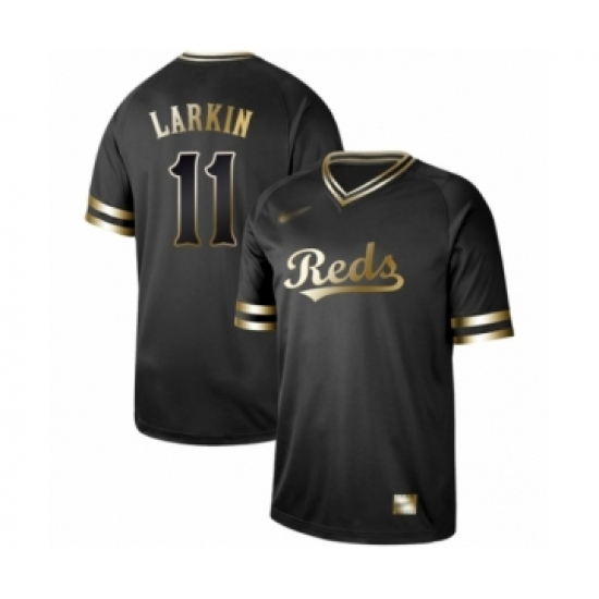Men's Cincinnati Reds #11 Barry Larkin Authentic Black Gold Fashion Baseball Jersey