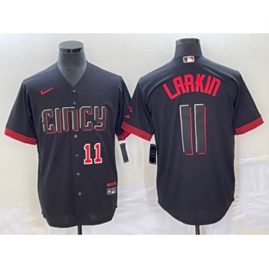 Men's Cincinnati Reds #11 Barry Larkin Number Black 2023 City Connect Cool Base Stitched Jersey