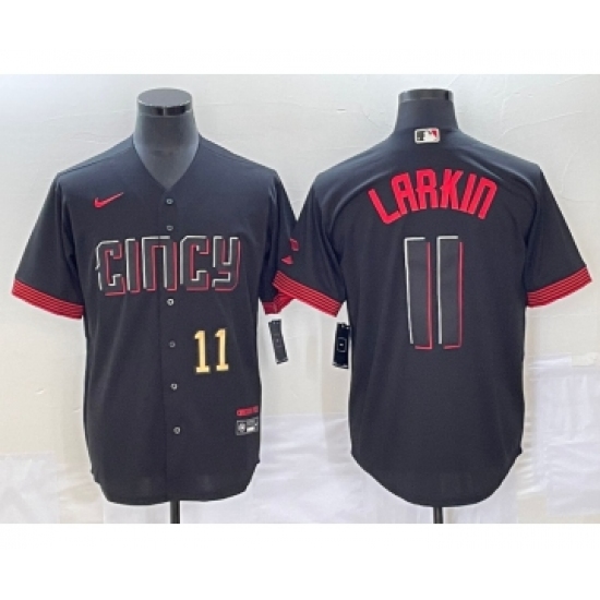 Men's Cincinnati Reds #11 Barry Larkin Black 2023 City Connect Flex Base Stitched Jersey 1