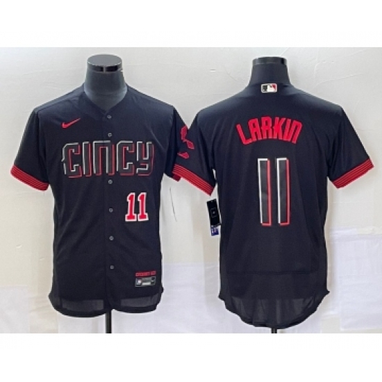 Men's Cincinnati Reds #11 Barry Larkin Black 2023 City Connect Flex Base Stitched Jersey