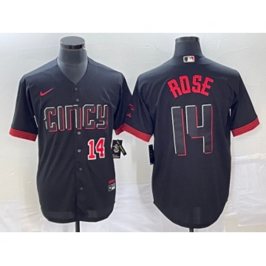 Men's Cincinnati Reds #14 Pete Rose Number Black 2023 City Connect Cool Base Stitched Jersey