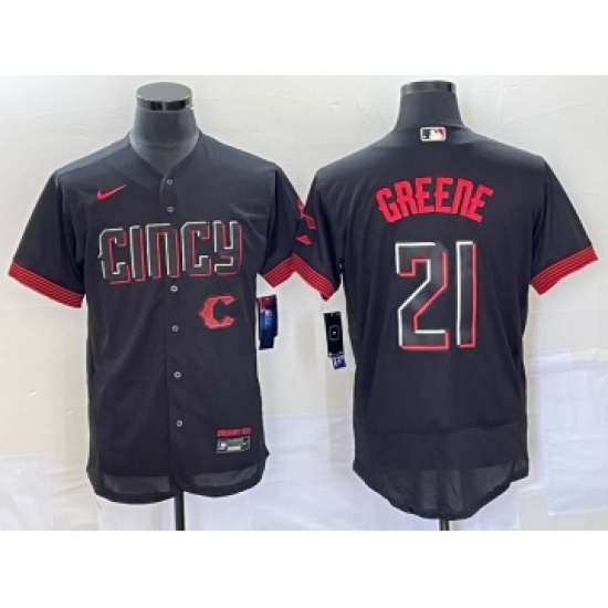 Men's Cincinnati Reds #21 Hunter Greene Black 2023 City Connect Flex Base Stitched Jersey