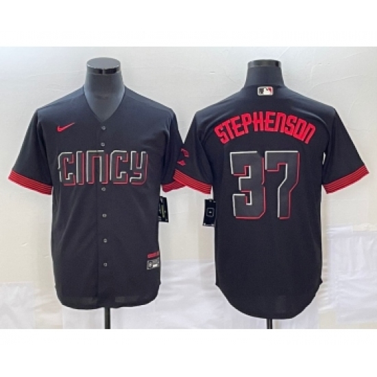 Men's Cincinnati Reds #37 Tyler Stephenson Black 2023 City Connect Cool Base Stitched Jersey