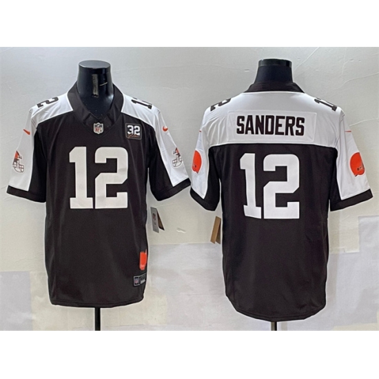 Men's Cleveland Browns #12 Shedeur Sanders Brown White 2025 Draft F.U.S.E. With Jim Brown Memorial & Home Vapor Limited Football Stitched Jersey